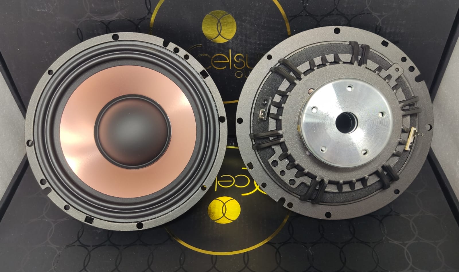 The composition of a powerful neodymium/hybrid magnet motor system, 50 mm voice coil, proprietary blended Aluminium cone for mid and high-range frequencies, and a powerful engine help to achieve powerful precise mid-bass with an excellent transient response.